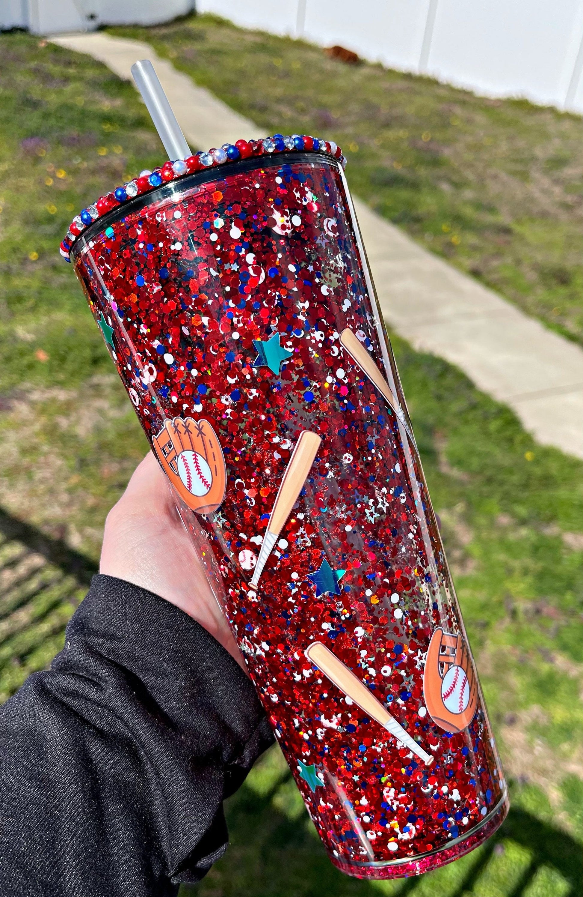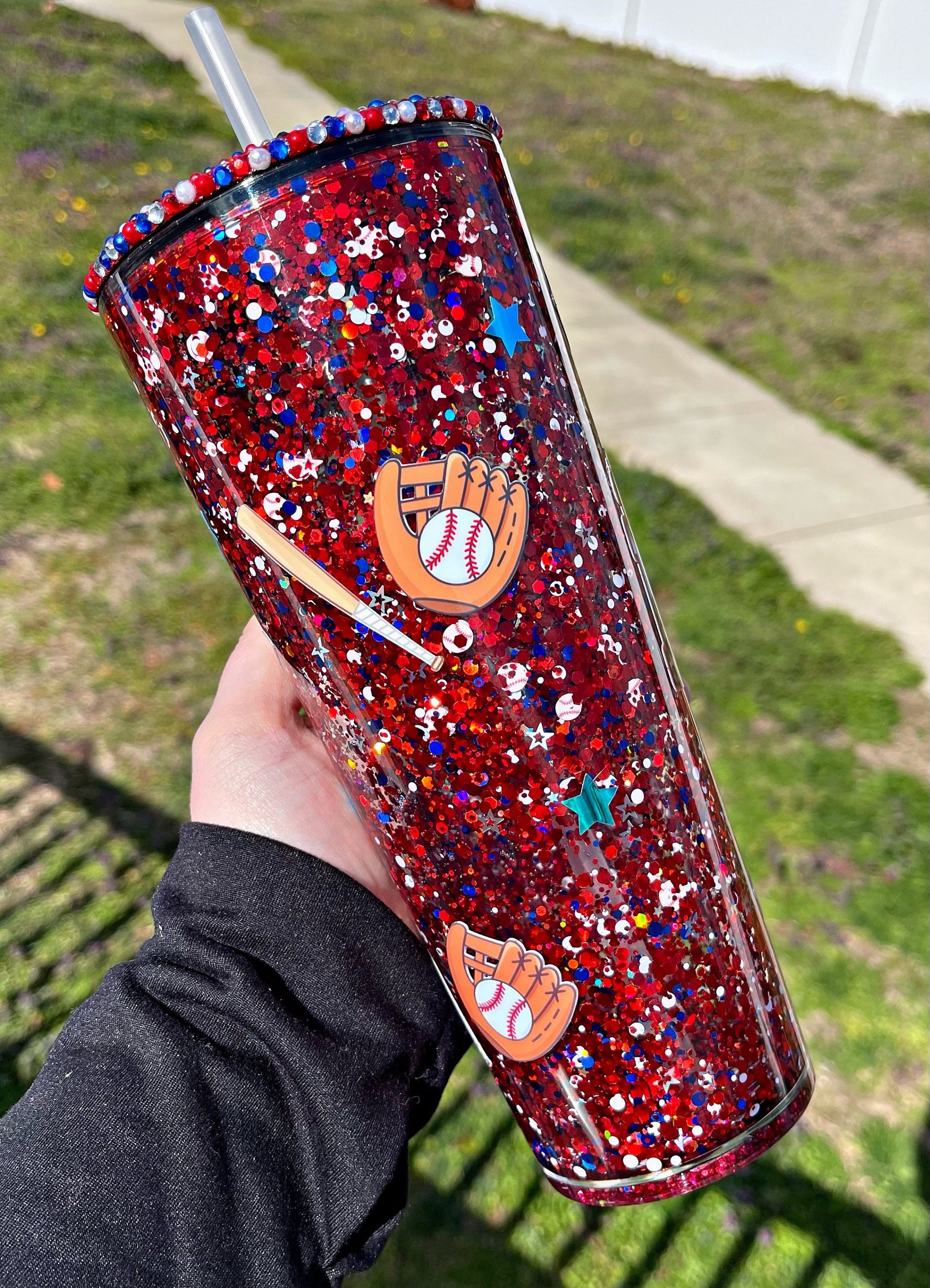 Baseball Mom Snow globe Tumbler, Americana Venti Cup, Blinged Lid Tumbler, Starbucks Tumbler Dupe, Double Wall Tumbler, Glitter Tumbler, 24 oz