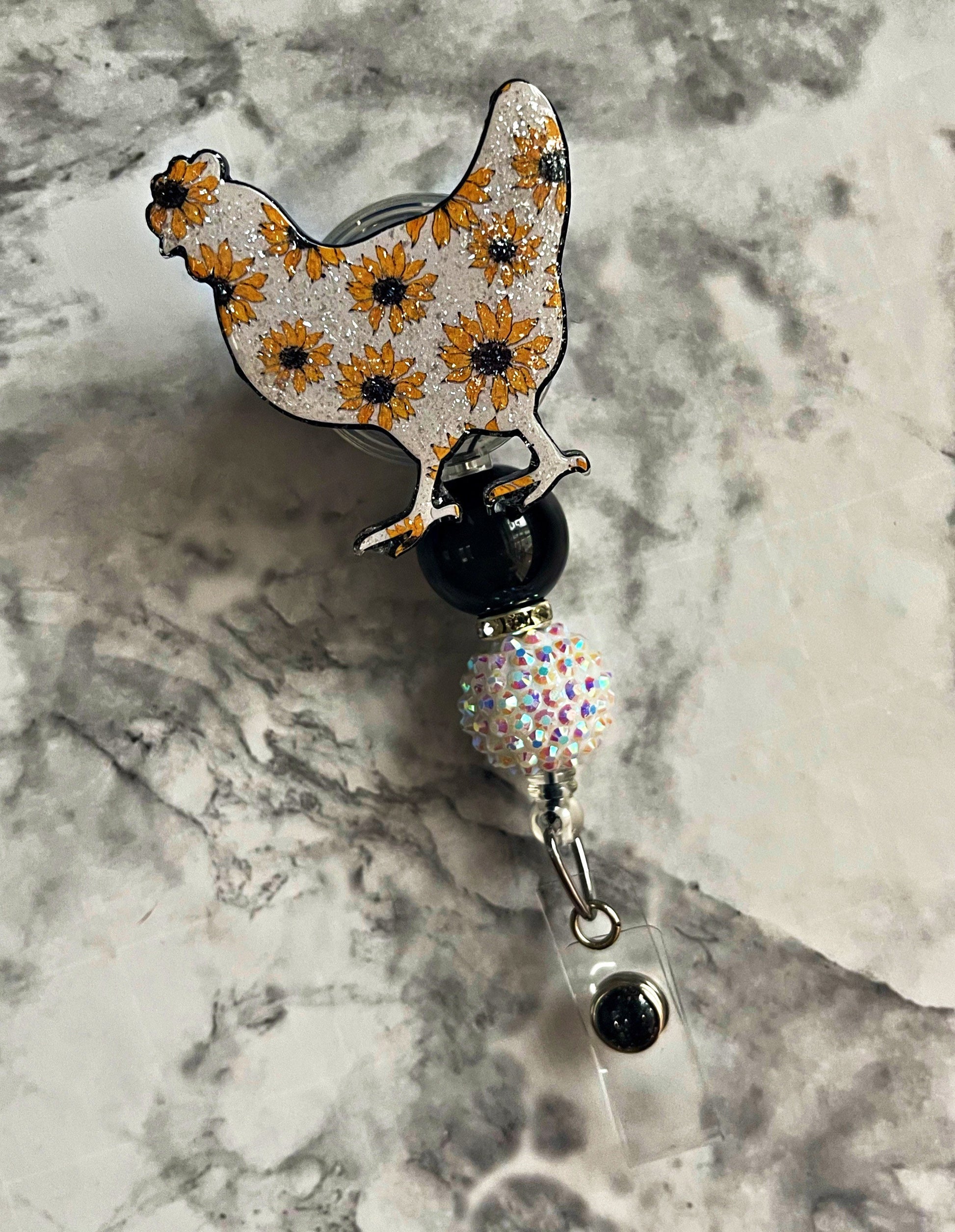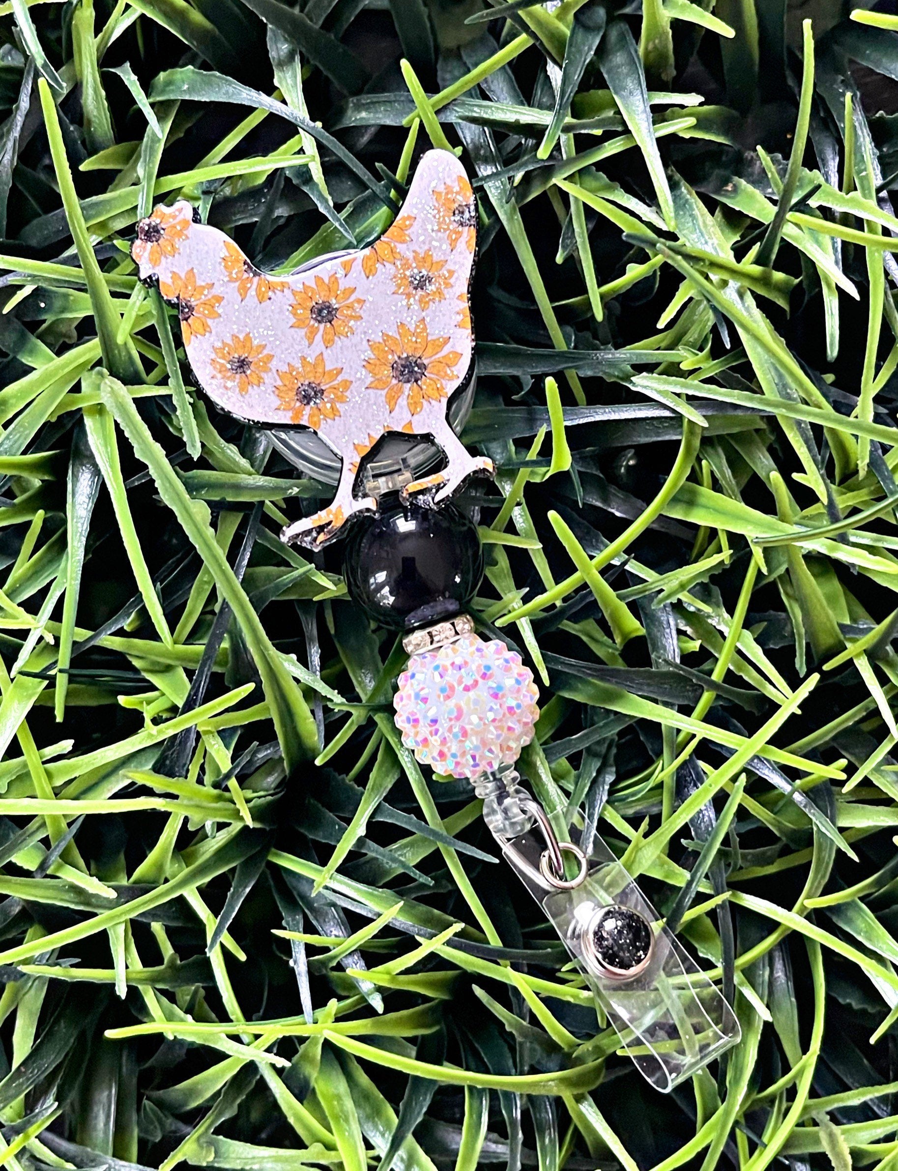 Chicken Badge Reel - Sunflower ID Clip- Chicken Retractable Badge Holder- Chicken ID Holder- Nurse Gift- Teacher Gift- Floral Key Card Hold