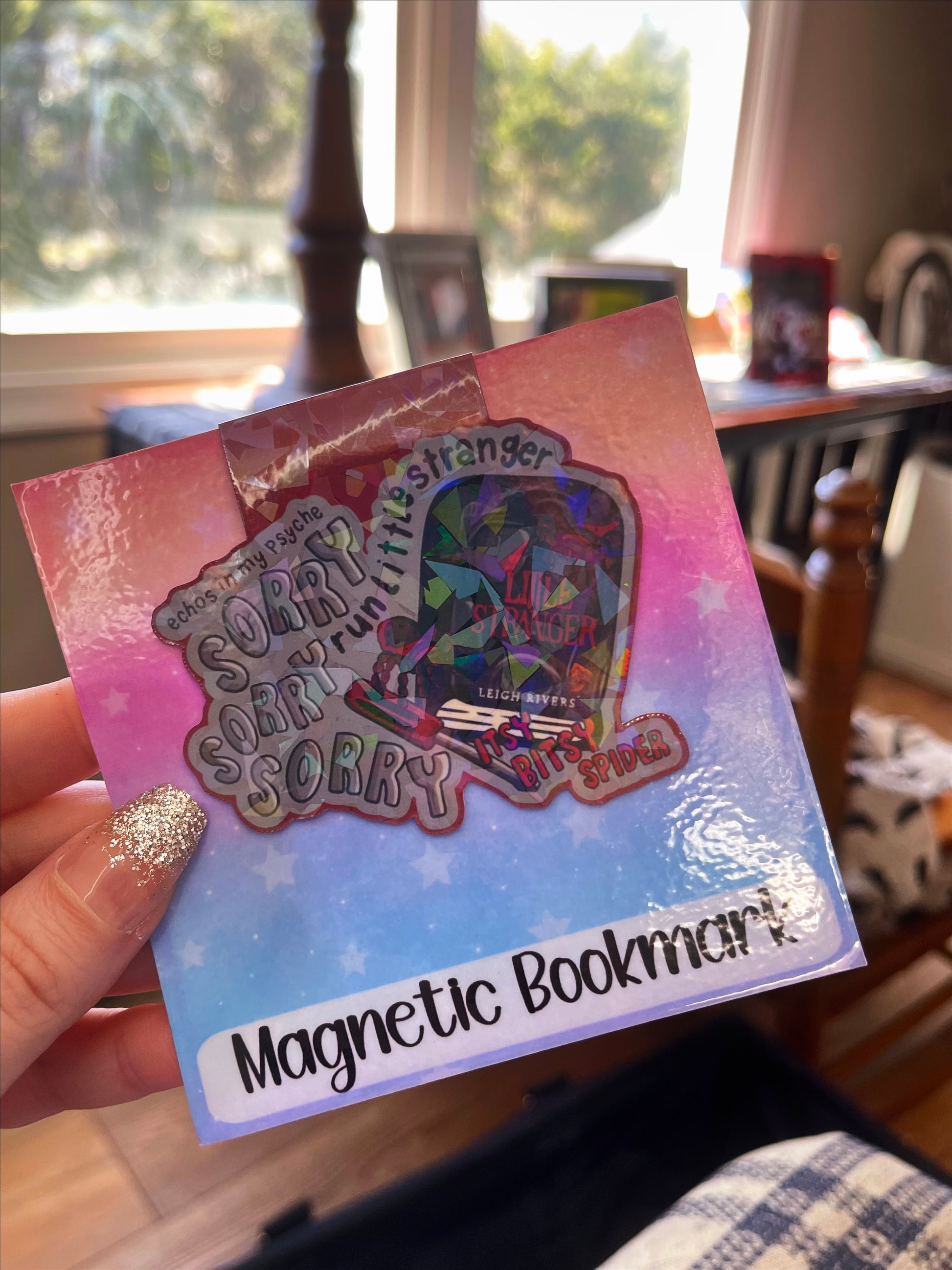 These magnetic bookmarks, crafted from high-quality photo paper and holographic laminate, measure approximately 3 inches. Their strong yet gentle magnetic hold ensures that your pages remain secure without damage. Please note that they contain small magnetic dots and should be kept out of reach of children.