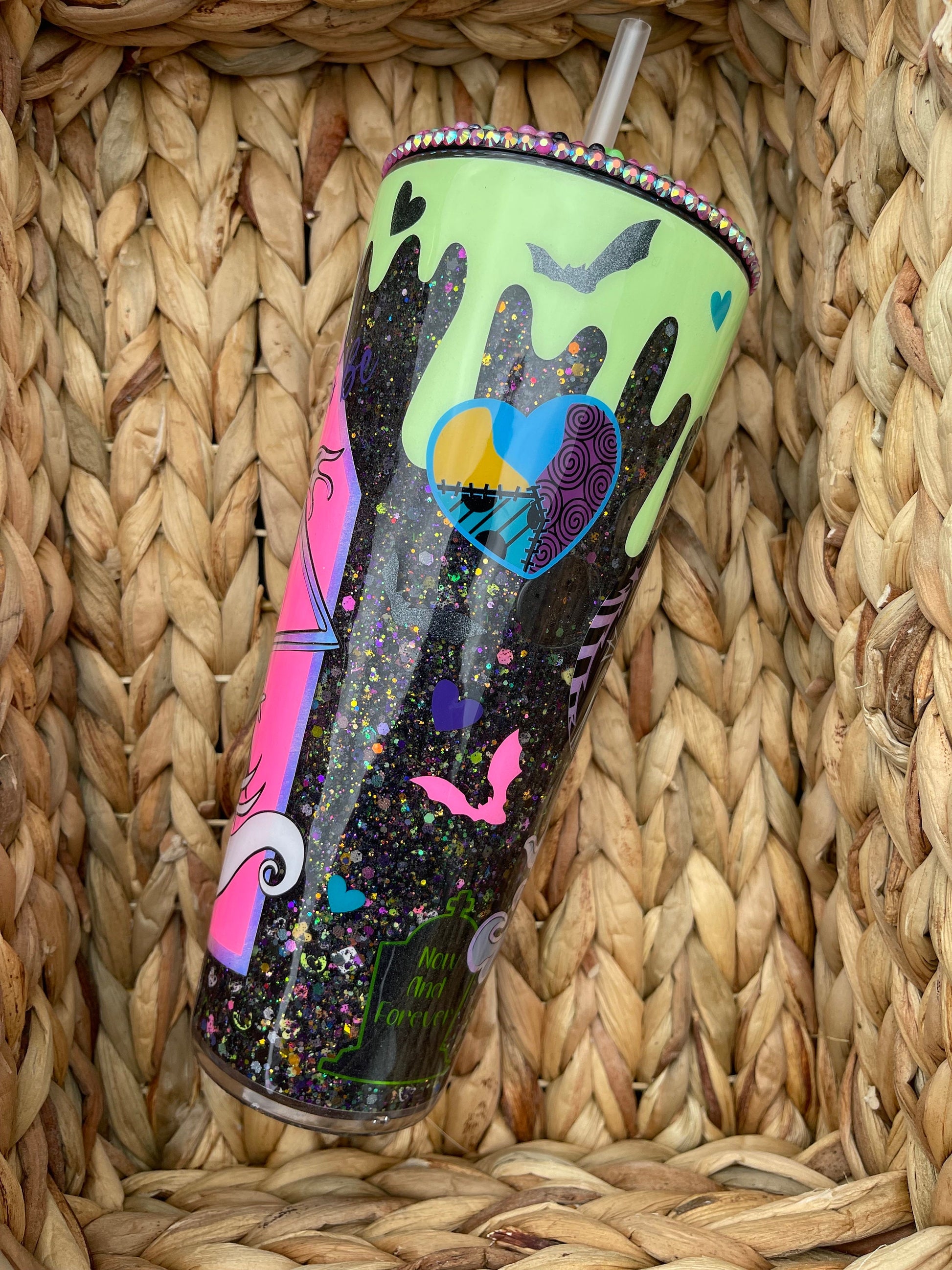 NBC SnowGlobe Tumbler, Jack and Sally Snow Globe Cup, Glow in The Dark Tumbler