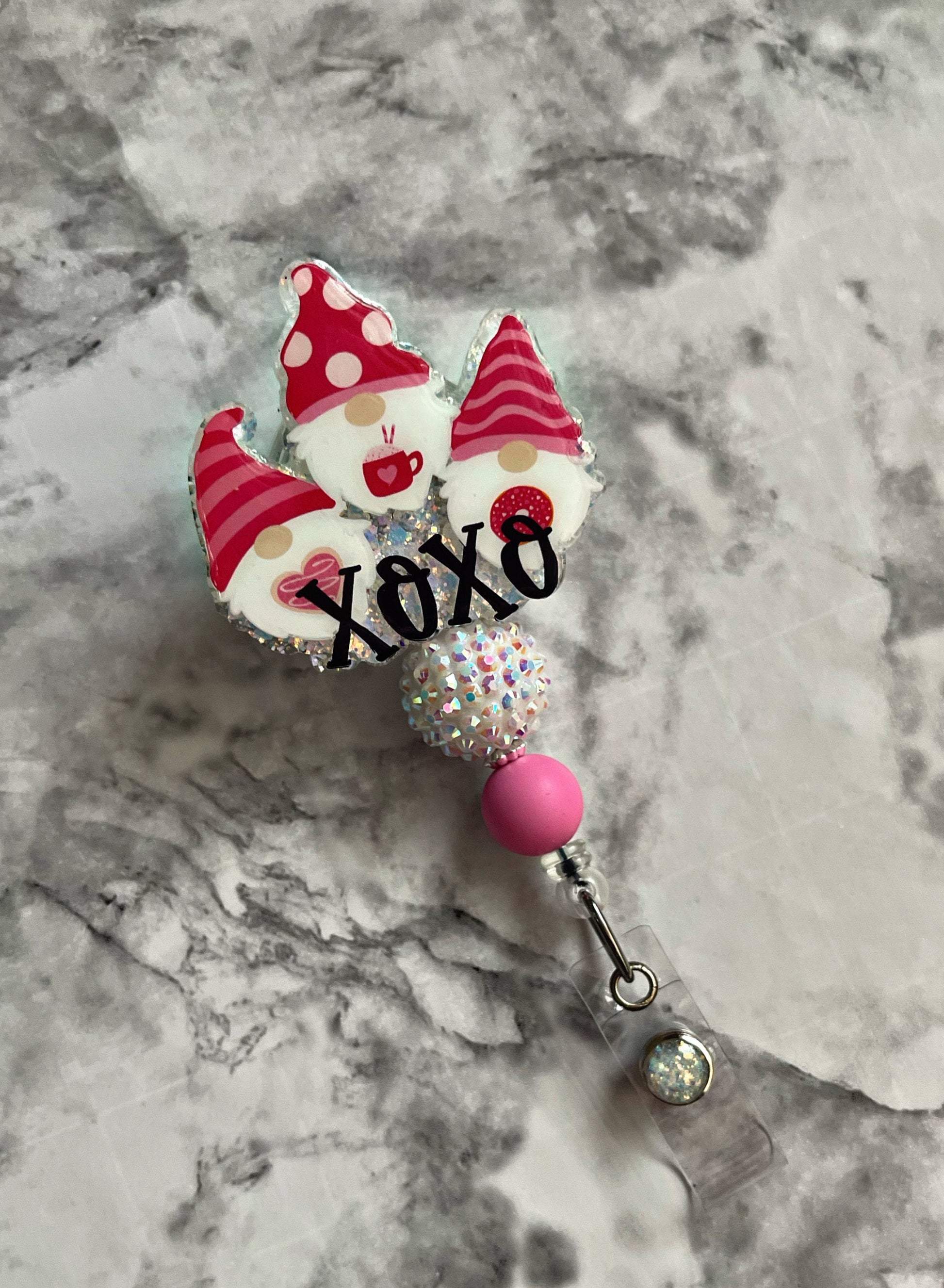 Valentines Day Gnomes Badge Reel, XOXO Holiday Badge ID Holder, Nurse Badge Reel, Teacher Accessories, Teachers Gift, Valentines Badge Reel